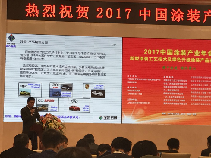 2018年7月2-3日,車身工程系列論壇 Car Body Painting 2018 第六屆汽車車身涂裝工程發(fā)展論壇在上海卓美亞喜瑪拉雅酒店圓滿落幕,保定宏誠變流器作為本屆論壇的贊助商之一參與了此次會(huì)議,并進(jìn)行了電泳涂漆節(jié)能解決新方案——HC-MACS(IGBT模塊電源)應(yīng)用的演講。